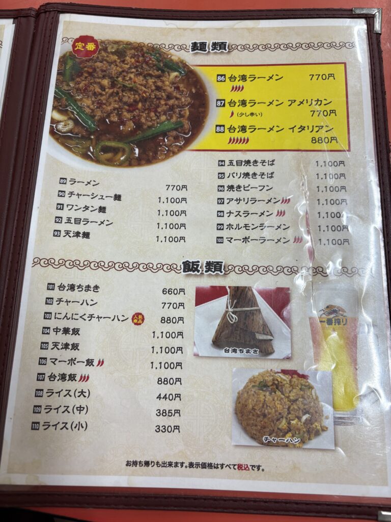 台湾ラーメンには、普通の台湾ラーメンのほかに、